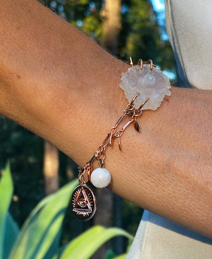 Clear Quartz slice & Moonstone Crystal bracelet