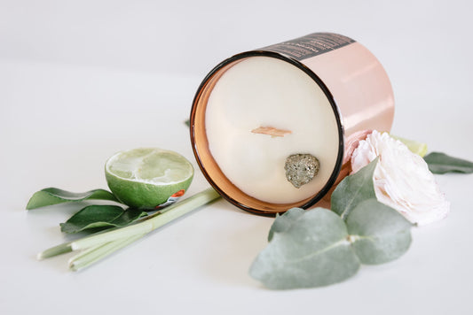 Crisp Lemongrass & Persian Lime Candle with PYRITE